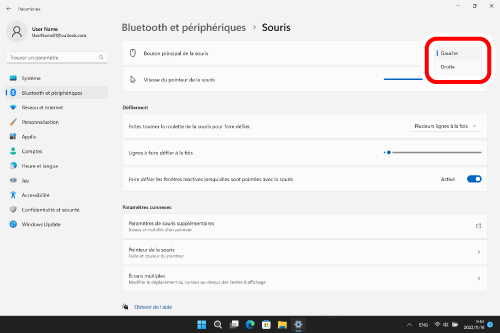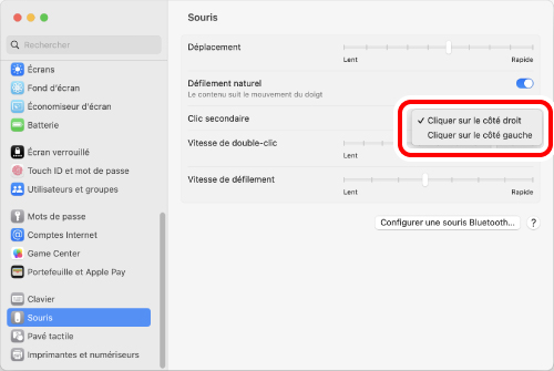 Lorsque vous cliquez sur « Cliquer sur le côté gauche », les boutons gauche et droit de la souris sont permutés.