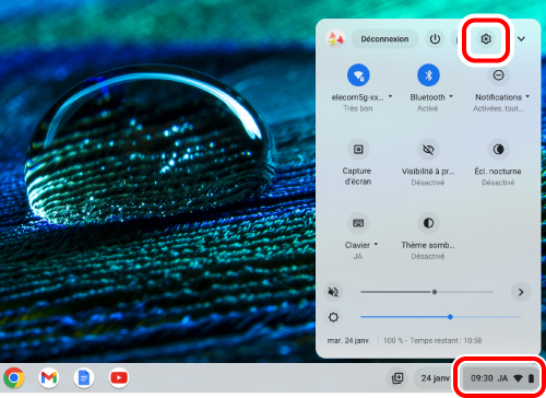 1) Cliquez sur le panneau des paramètres rapides en bas à droite.