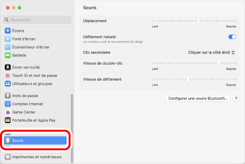 1) Cliquez sur « Souris » sous « Réglages systéme ».