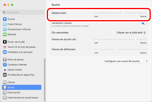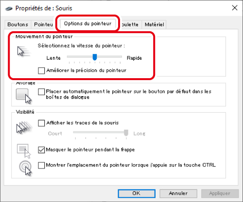 Modifier la vitesse du pointeur de la souris