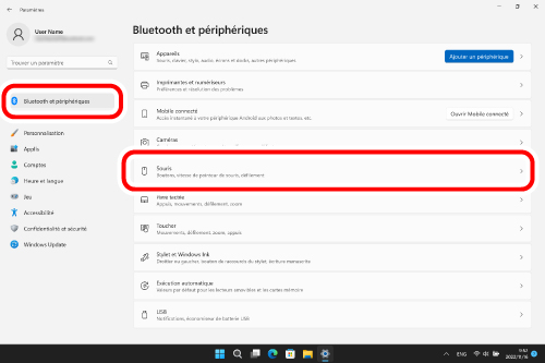 2) Cliquez sur « Bluetooth et périphériques », puis sur « Souris ».