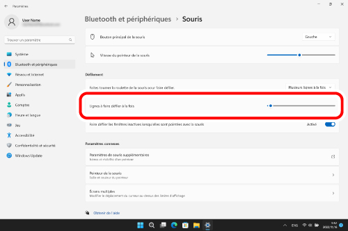 Modifiez le nombre de lignes défilant en un tour de roulette.