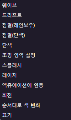 | 역광 | 1,677만 색상 RGB 조명 |