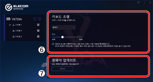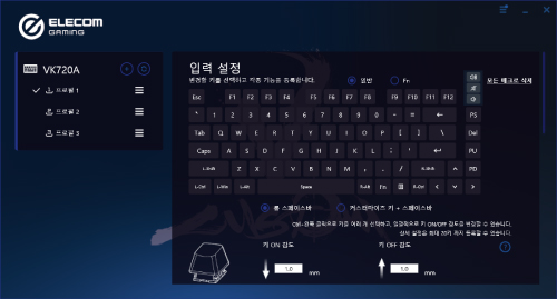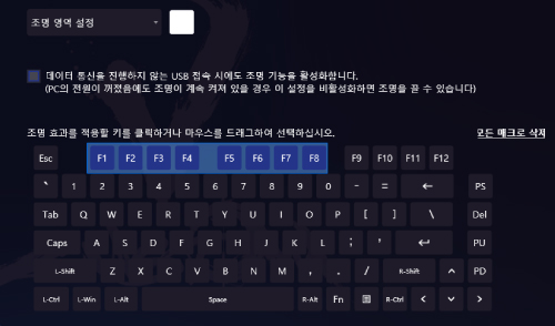본 제품이 EG tool이 설치되지 않은 컴퓨터에 연결된 경우 메모리에 할당된 프로필은 키보드 자체에서 읽습니다.