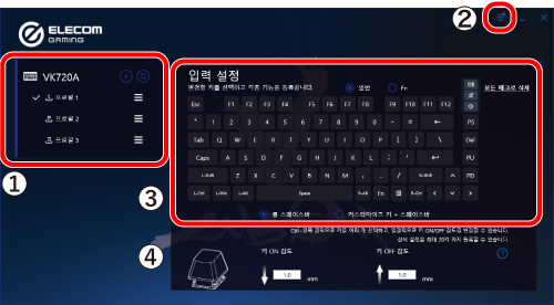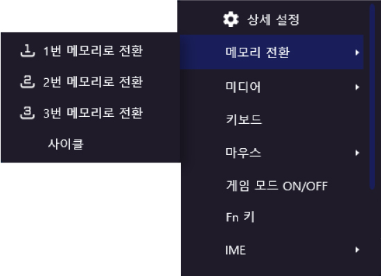 메모리 번호는 ‘ELECOM GAMING Tool(EG Tool) 설정’ - ‘프로필 설정’ - ‘메모리 번호 할당’을 참조하십시오.