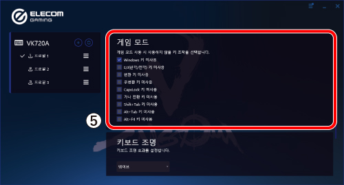 ⑤ 게이밍 모드 키