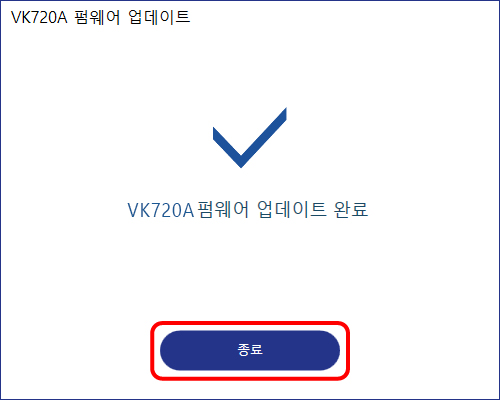 4) 업데이트 완료 화면에서 ‘종료’를 클릭합니다.