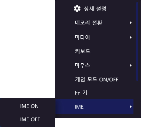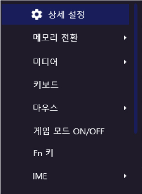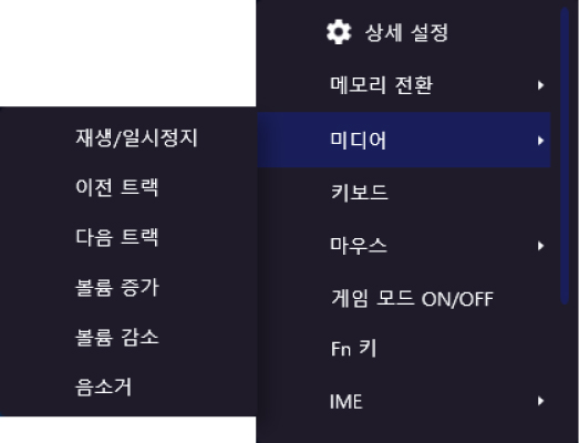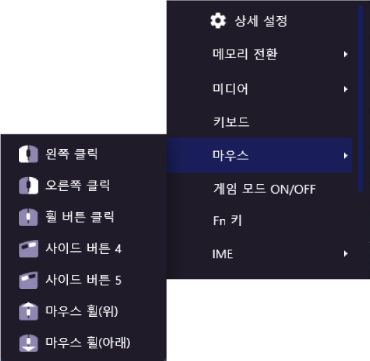 휠을 돌리거나 눌렀을 때의 기능을 할당할 수 있습니다.
