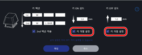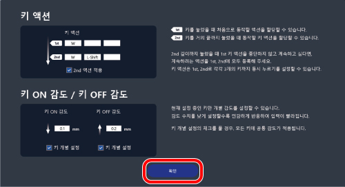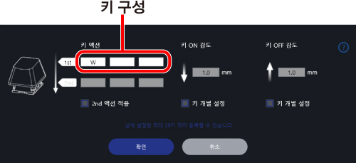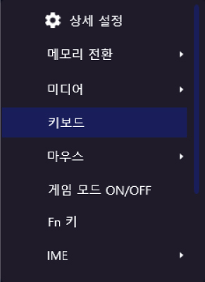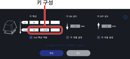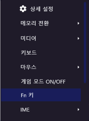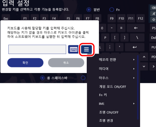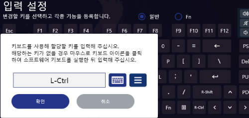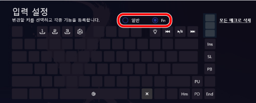 과 다른 키를 동시에 누르면 키 설정 화면에서 할당된 기능을 사용할 수 있습니다.
