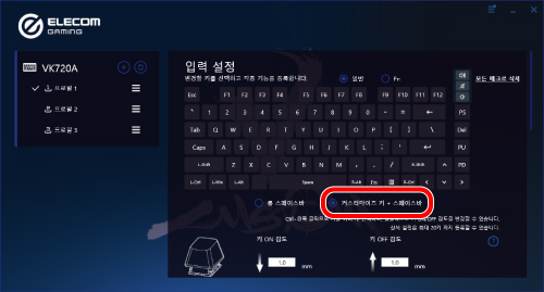 을 누르면 게이밍 모드에서 작동합니다. 게이밍 모드를 설정하려면 당사 웹 사이트에서 ELECOM GAMING Tool(EG Tool)을 다운로드해 설치해야 합니다.