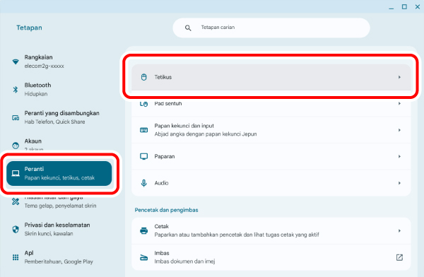 1) Klik “Tetikus” di bawah “Seting Sistem”.
