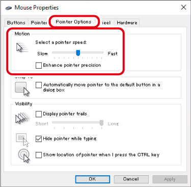 3) Laraskan bar peluncur “Kelajuan penuding tetikus” untuk melaraskan kelajuan pergerakan penuding tetikus.