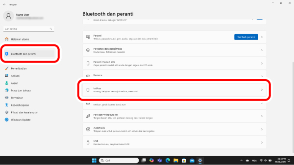 2) Klik pada “Bluetooth dan peranti” dan kemudian “tetikus”.