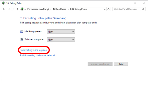 8) Pada skrin “Edit Seting Pelan”, klik “Tukar seting kuasa lanjutan”.