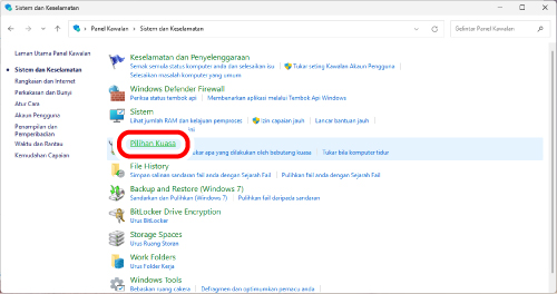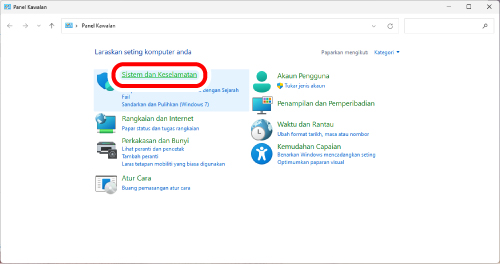 5) Klik “Sistem dan Keselamatan”.
