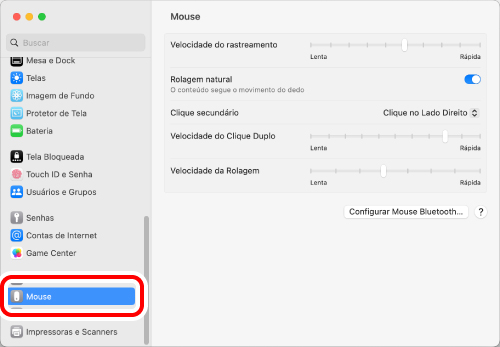 1) Clique em “Mouse” em “Ajustes do Sistema”.
