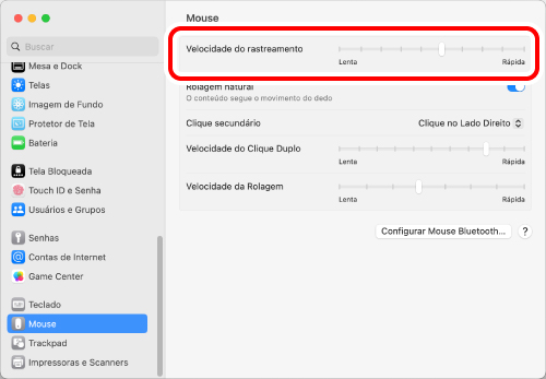 2) Ajuste o controle deslizante “Velocidade do rastreamento” para ajustar a velocidade do ponteiro do mouse.