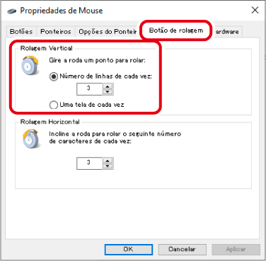 3) Altere o valor de “Número de linhas de cada vez” na seção “Gire a roda um ponto para rolar”