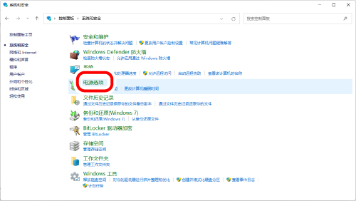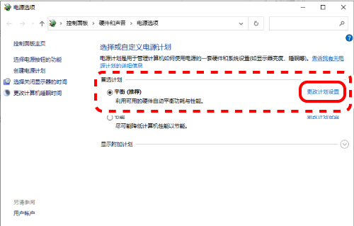 2)单击“电源选项”中所选项目右侧的“更改计划设置”。