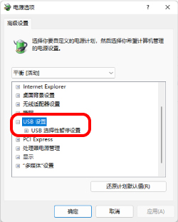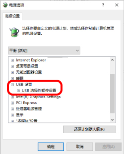 9)在“电源选项”界面,单击列表中“USB设置”中的“+”标记,然后单击“USB选择性暂停设置”中的“+”标记。