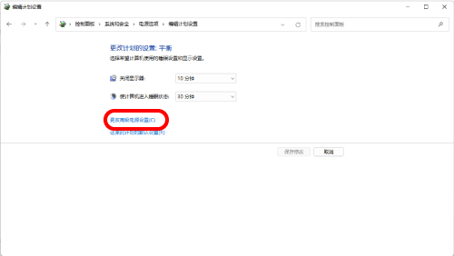 3)在“编辑计划设置”界面,单击“更改高级电源设置”。