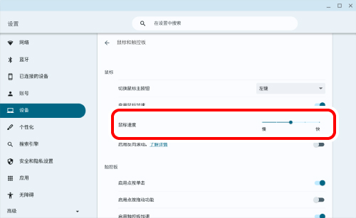 4)调整“鼠标速度”滑块调整鼠标指针的速度。