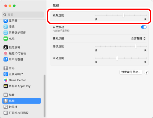 2)调整“跟踪速度”滑块,以调整鼠标指针移动速度。