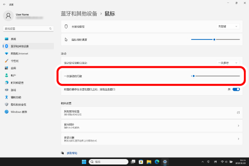 3)调整“一次滚动的行数”滑块调整每次滚轮滚动的行数。