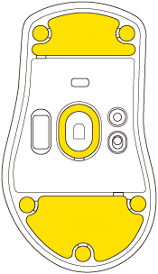 将要更换的鼠标垫片从下图中黄色所示的凹槽中撕下。