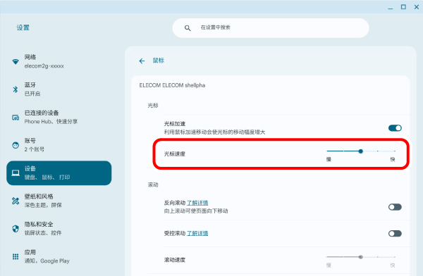 4)使用“ELECOM shellpha”中的“光标速度”滑块调整鼠标指针的速度。