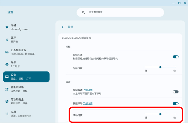 5)使用“ELECOM shellpha”的“滚动速度”滑块调整每次滚动的行数。