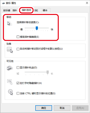 在鼠标移动过快或过慢时,调整鼠标指针移动速度。