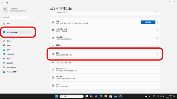 2)点击“蓝牙和其他设备”,然后点击“鼠标”。