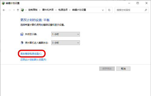 3)在“编辑计划设置”界面,单击“更改高级电源设置”。