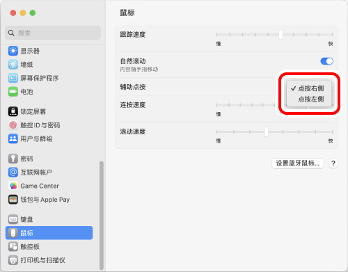 2) 点击“辅助点按”下拉菜单,然后点击“点按左侧”。