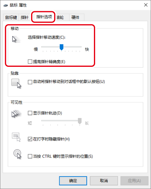 在鼠标移动过快或过慢时,调整鼠标指针移动速度。