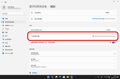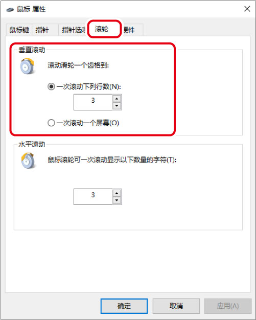 3)调整“一次滚动的行数”滑块调整每次滚轮滚动的行数。