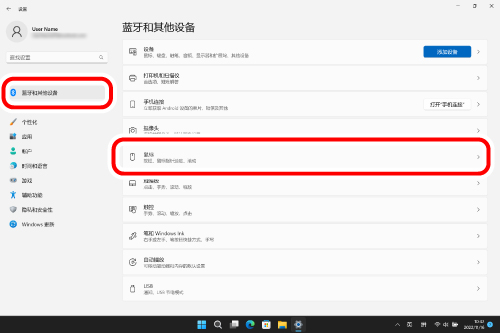 2) 点击“蓝牙和其他设备”,然后点击“鼠标”。