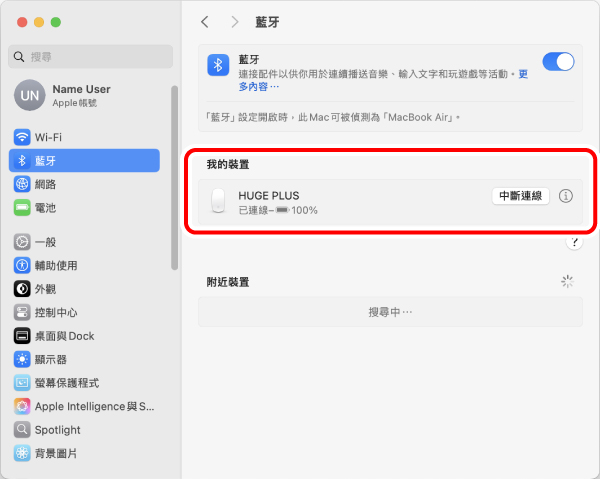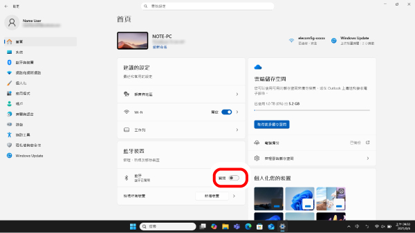以下步驟以 Intel® 公司生產藍牙功能為例進行說明。