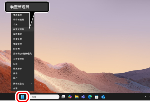 1) 右鍵點擊「開始」,開啟「裝置管理員」。
