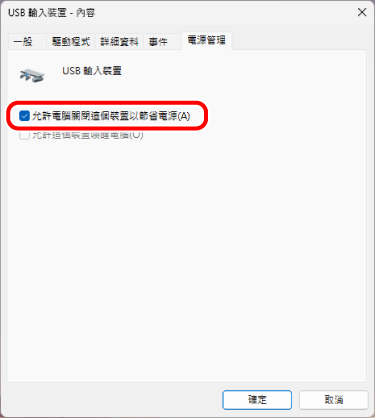 4) 在「USB 輸入裝置內容」頁面,點擊「電源管理」索引標籤。