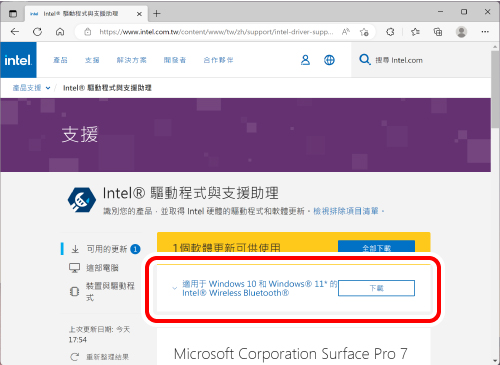 9) 從清單中下載「Intel® Wireless Bluetooth®」(如有)。