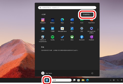 6)點擊「開始」 ,然後點擊「所有應用程式」。