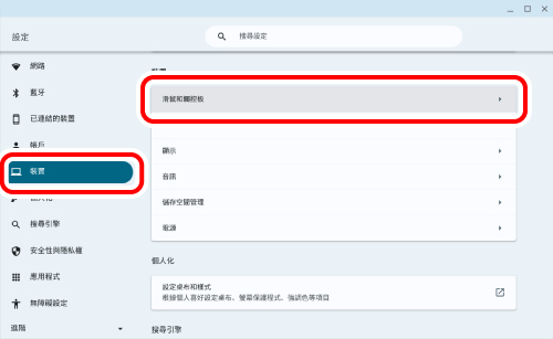 3) 點擊「裝置」下的「滑鼠和觸控板」。