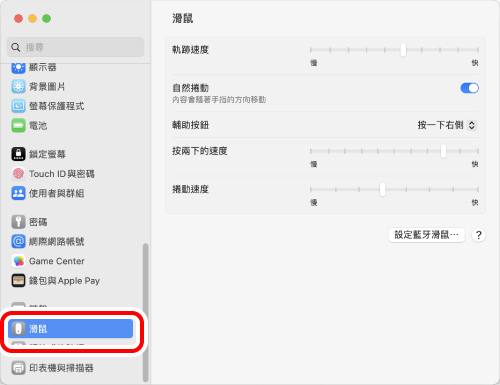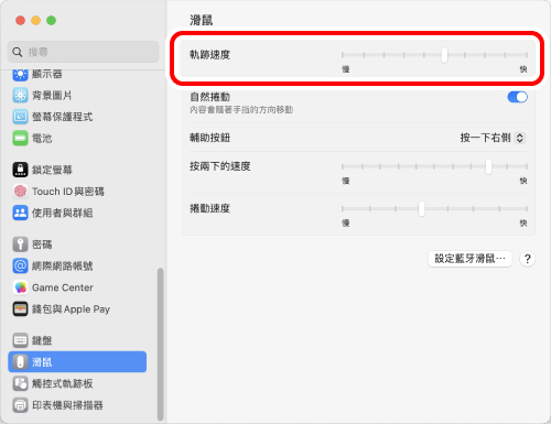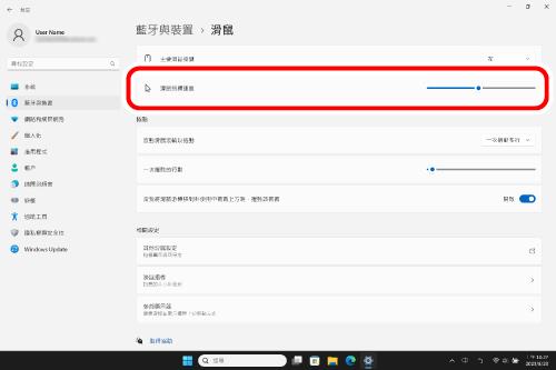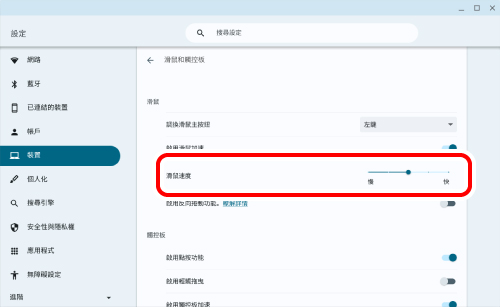 4) 調整「滑鼠速度」滑塊,調整滑鼠移動速度。