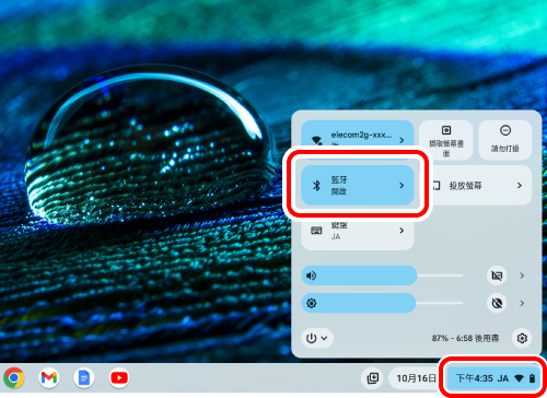 快速設定面板上的藍牙。