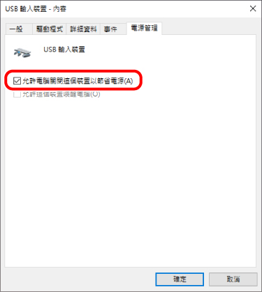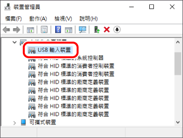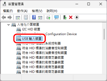 可能會列出數個「USB 輸入裝置」。在此情況下,請對所有列出的「USB 輸入裝置」執行下列操作。