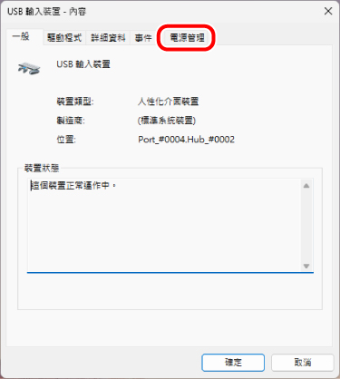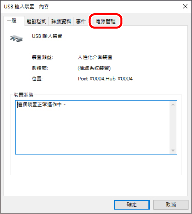 4) 在「USB 輸入裝置 - 內容」頁面,點擊「電源管理」索引標籤。