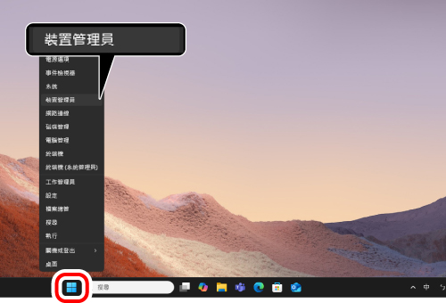 1) 右鍵點擊「開始」,開啟「裝置管理員」。
