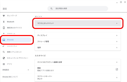3) 「デバイス」の[マウスとタッチパッド]をクリックします。